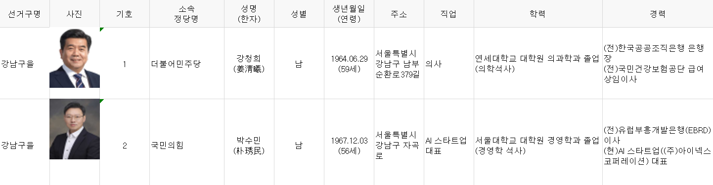 제22대 국회의원 서울특별시 강남구을 후보자 │