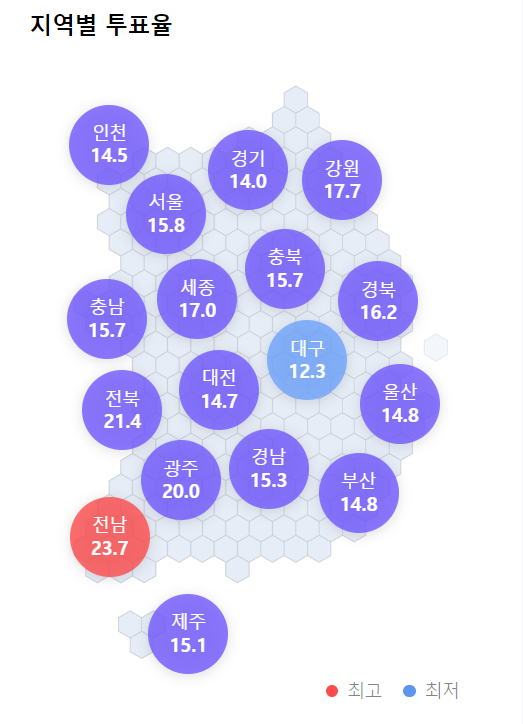 < 다른지역 사전 투표율 검색하기 : 선관위 제공 >