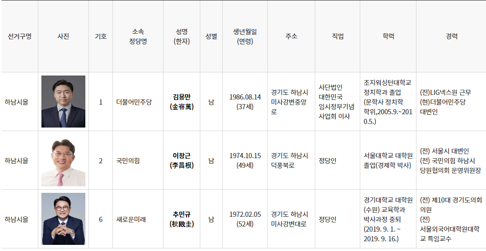 하남시을 후보자 안내 │하남시을 여론조사 확인 │