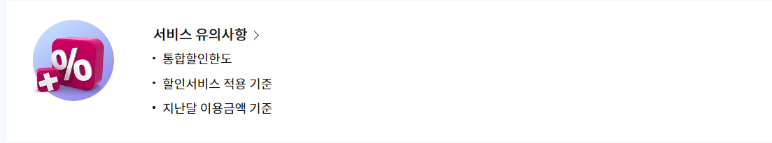 - 이동통신 할인 서비스는 월 1회 적용됩니다.