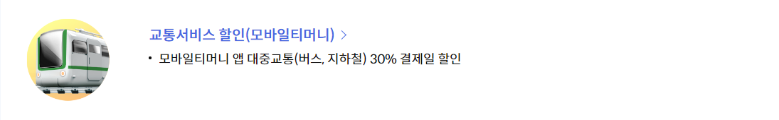 - 교통 서비스 관련 유의사항 및 전월 이용금액 관련 세부기준은 [공통 유의사항]페이지에서 확인바랍니다.