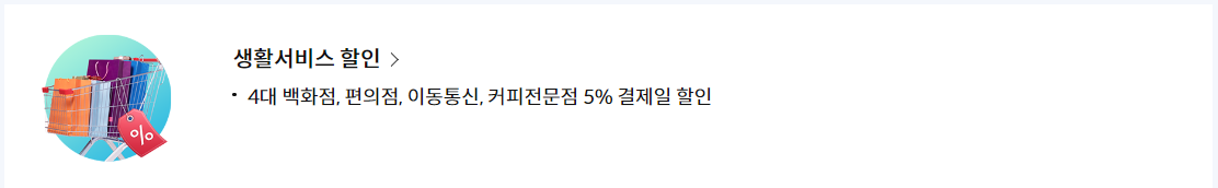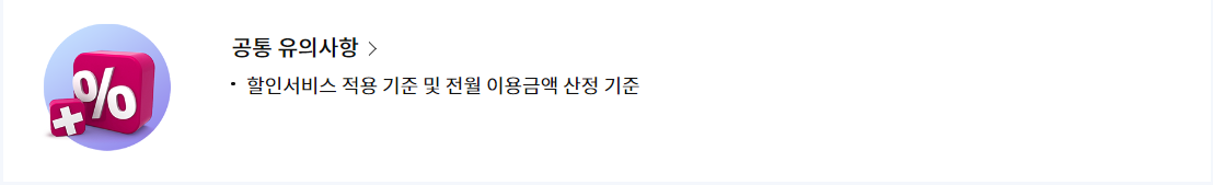 - 생활 서비스 관련 유의사항 및 전월 이용금액 관련 세부기준은 [공통 유의사항]페이지에서 확인바랍니다.