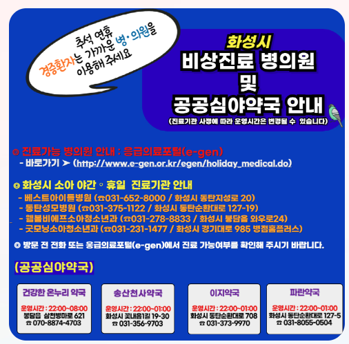 2. 추석 연휴에 문여는 경기도 화성시 병원
