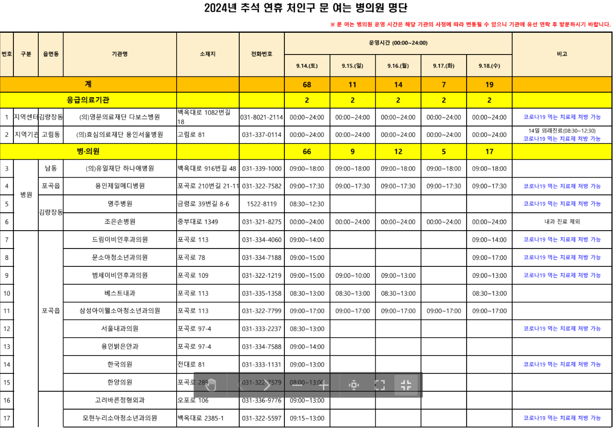 1. 추석 연휴에 문여는 용인시 처인구 병원 (☞스마트폰 가로보기 추천)