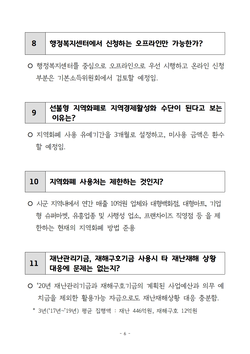 이어 이 지사는 “정부의 배려로 재난관리기금과 재난구호기금을 활용할 수 있게 됐지만 이를 다 모아도 도민 1인당 5만 원을 넘기 어려워 재원을 총동원했다”며 “소액이고 일회적이지만 경기도형 재난기본소득이 국가 차원의 기본소득 논의의 단초가 되고 새로운 시대에 걸맞은 새 정책으로 자리잡기를 소망한다”고 밝혔다.