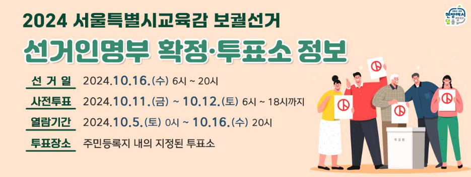 | 2024년 10.16 재보궐 선거 안내 │서울시 동대문구 선거인명부 열람│ 서울시 동대문구 선거일 투표소 안내 (0) | 2024.10.10 |