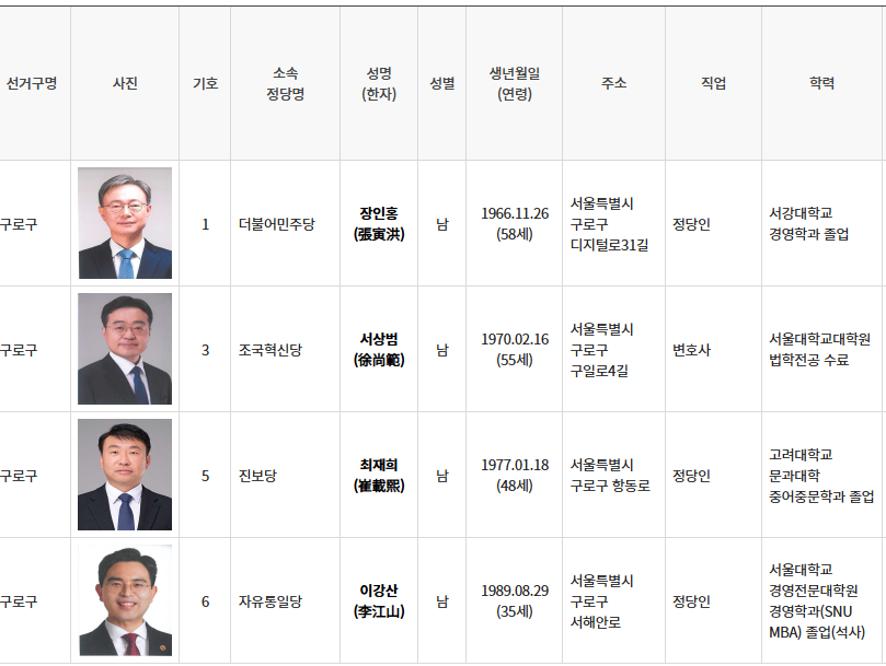 ◎ 서울시 구로구(구청장 선거) 후보자 안내