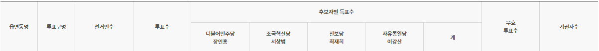 | 선거일투표 | 우편 + 관내사전투표(신고인수) | 계 | 선거일투표 | 우편 + 관내사전투표(접수수) | 계 | ||