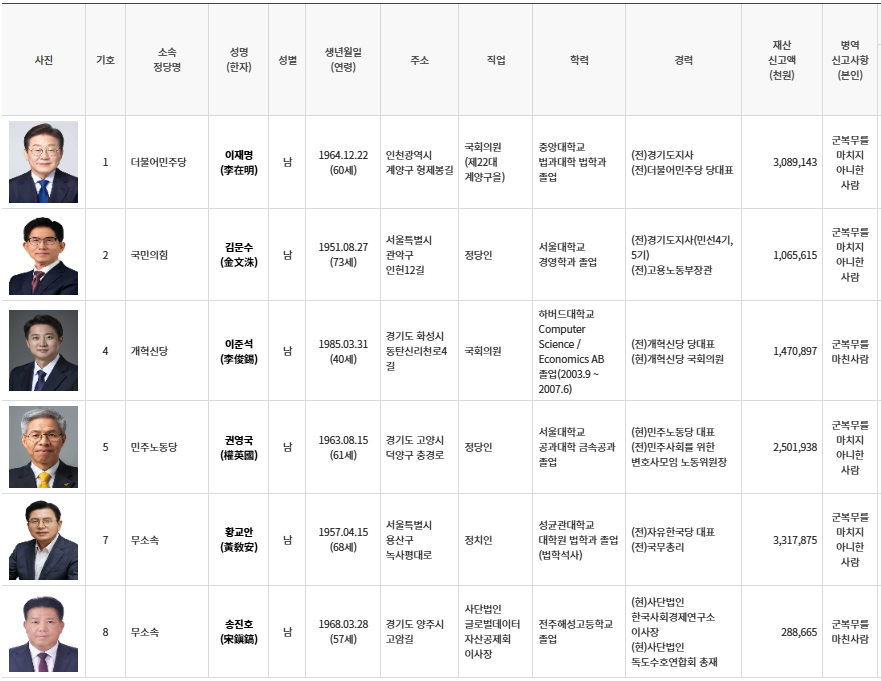 [🗳️] 대통령 후보자 소개 및 정책 공약마당 (중앙선관위)