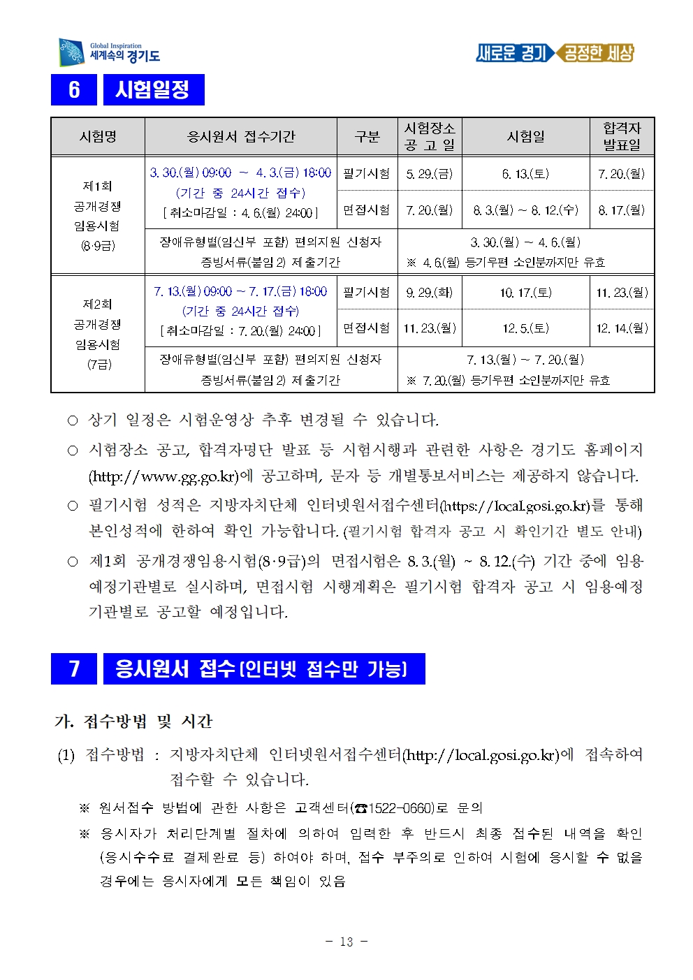 2020년 경기도 2020년도 제1회 및 제2회 경기도 지방공무원 공개경쟁임용시험 시행계획 공고가