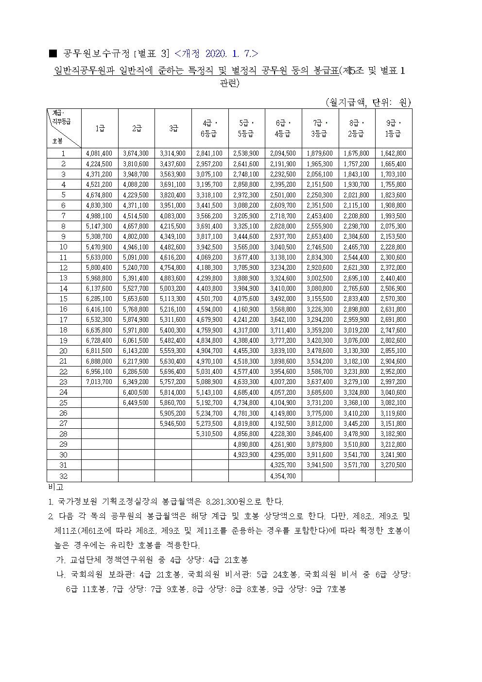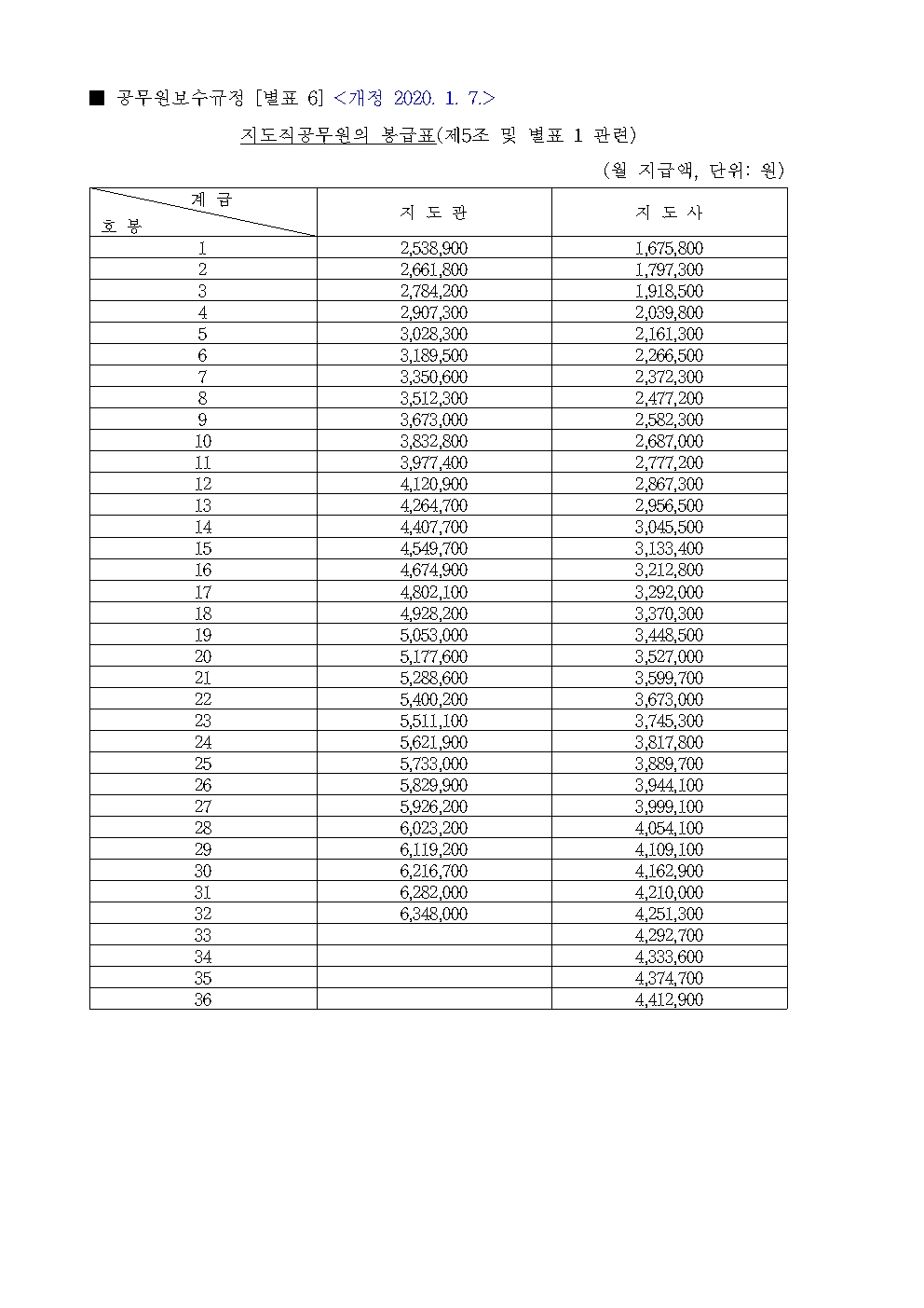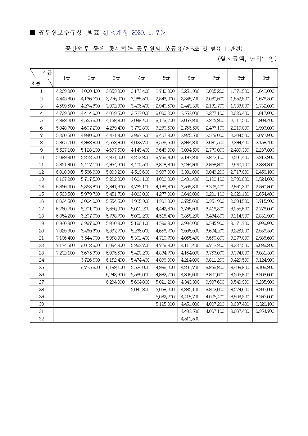 2020년 공무원 봉급표